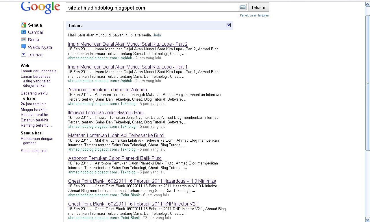Untuk itu sebagai blogger yang masih belajar, juragan mencoba untuk meraba-raba halaman hasil pencarian google.